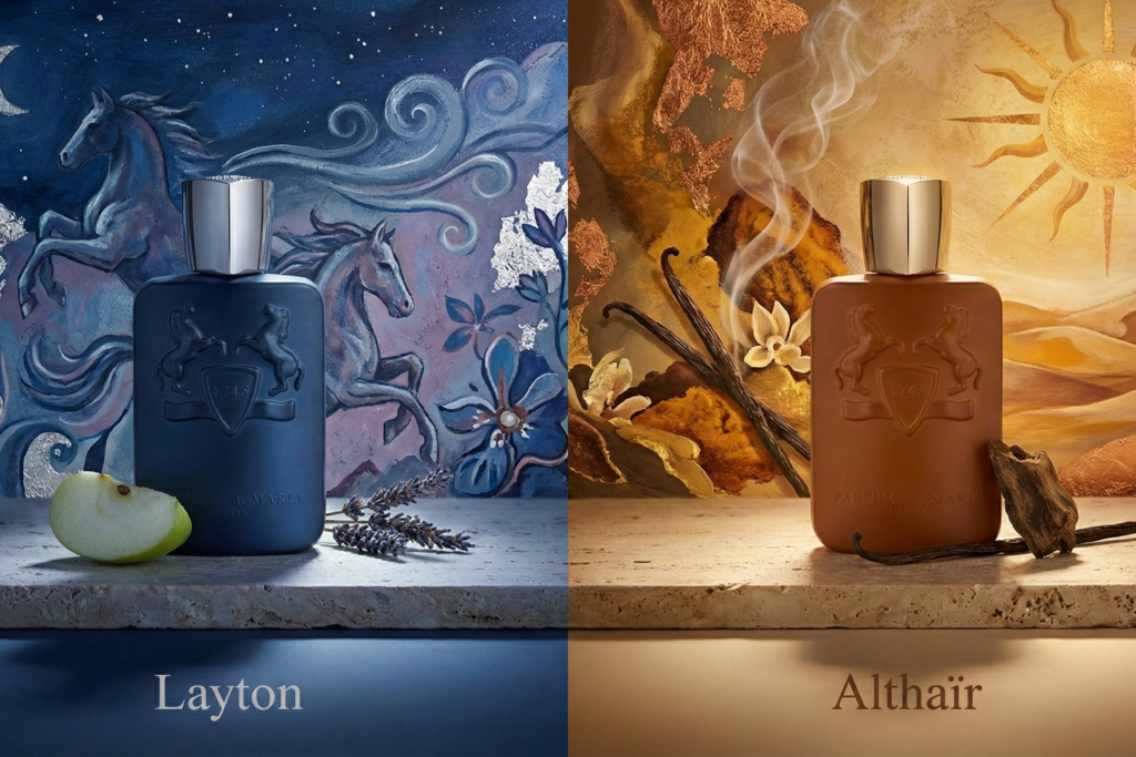 Choose Layton if you want impact and projection. Choose Althaïr if you want a smoother, more intimate vanilla that feels airier and closer to the skin.